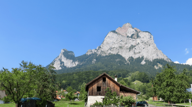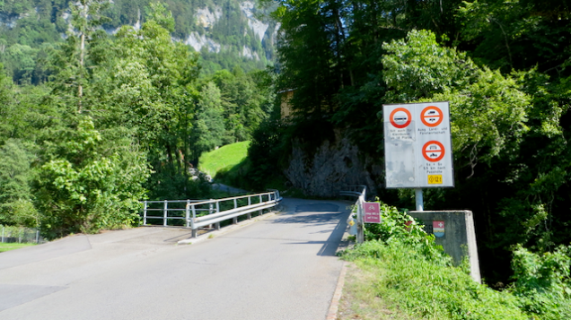 Am Talboden angekommen gönnen wir uns einen Blick zurück zur Pragelpassstrecke, aber auch auf die fortschrittliche Architektur der dortigen Bauherren.