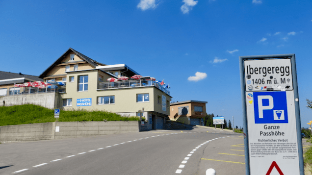 Nun kurvt die Strasse wieder bergauf, und wir können die lautlose Leistung des Tesla richtig ausspielen. Es ist eine Freude, wie leicht der Tesla die engen Kurven nimmt und sofort wieder heraus beschleunigt. Auf der Passhöhe Ibergeregg geniessen wir nur kurz die Aussicht. Wer mag, bleibt länger und besucht das Restaurant.