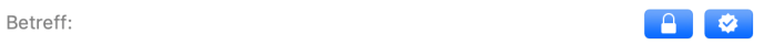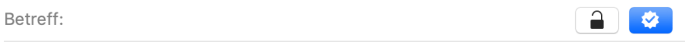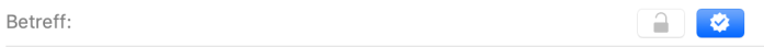 Jetzt können wir unsere Email immerhin bereits signieren. Wenn wir irgendeine Email-Adresse im „An“-Feld erfassen, sehen wir an dies an dem Haken in dem blauen Knopf auf der Betreff-Zeile. Hier können wir das Signieren auch an- und abschalten.