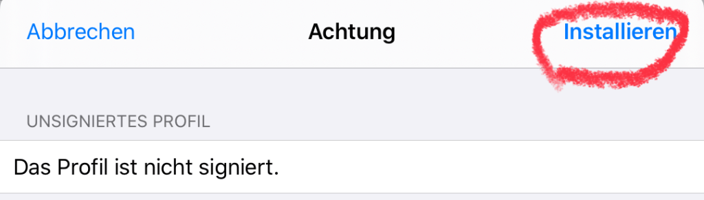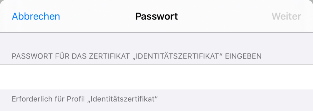 Leider hat Apple den Import des Zertifikats und dessen Konfiguration auf mobilen Geräten im Vergleich zum MacOS sehr erschwert. Man könnte geneigt sein zu glauben, dass Apple nicht will, dass wir verschlüsselt kommunizieren. Das stimmt zwar nicht, sollte uns aber ein Ansporn sein, es umso mehr zu wollen.