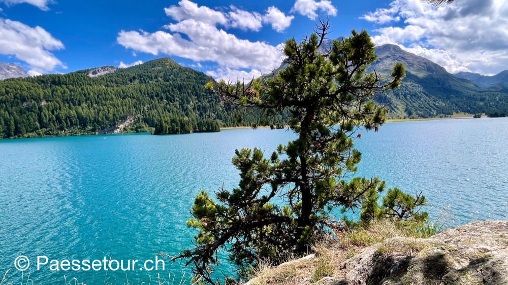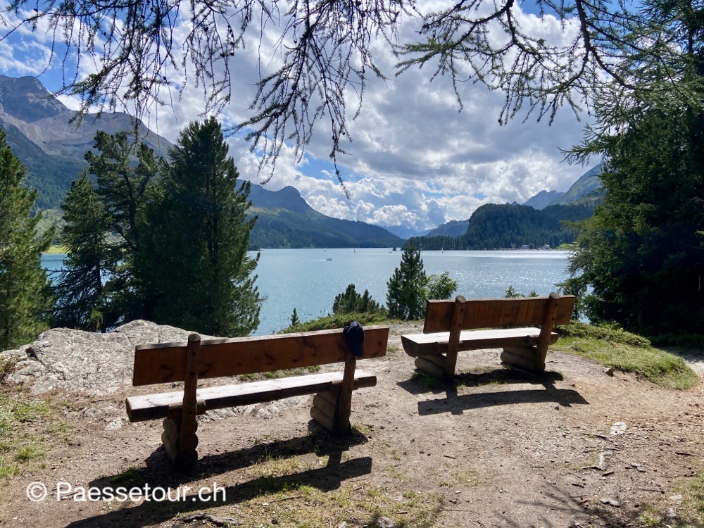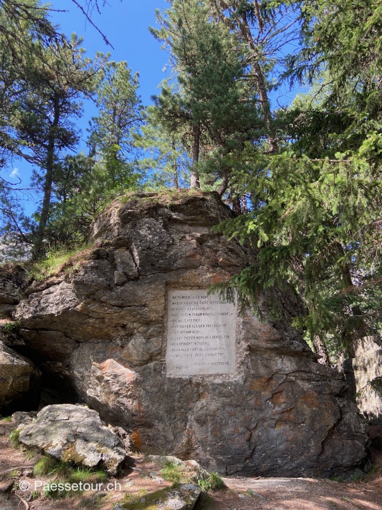 Von Sils sind wir zu Fuss rasch am Silsersee. Diesen Weg ging Nietzsche gerne über die Halbinsel Chaste. Aus diesem Grund gibt es auch ein Denkmal mit einer schönen Aussicht.