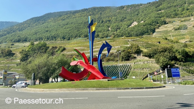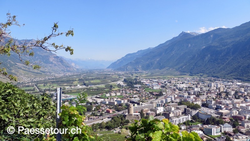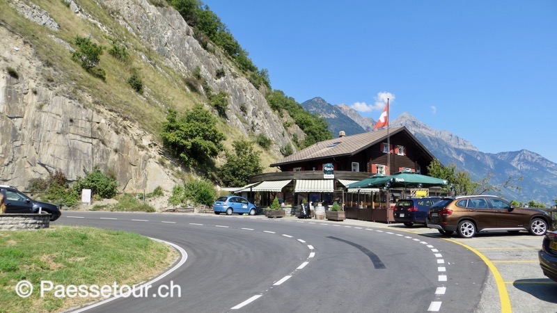 Zum Col de la Forclaz gibt es ab Martigny-Croix eine neuere Strasse, die sich im ersten Teil schnurgerade mit einer Spitzkehre durch die Weinhänge oberhalb von Martigny zieht. An der Spitzkehre steht das Restaurant Le Virage, dem alle Parkplätze an diesem Aussichtspunkt oberhalb von Martigny gehören.