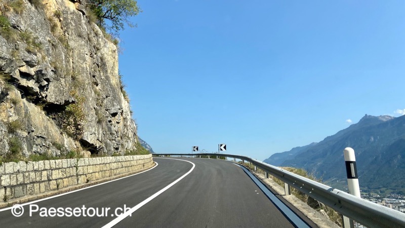 Auch wenn der Blick über Martigny und das Rhonetal recht ansprechend ist, so langweilig ist die Strasse. Zum Glück gibt es noch die alte Passstrasse.