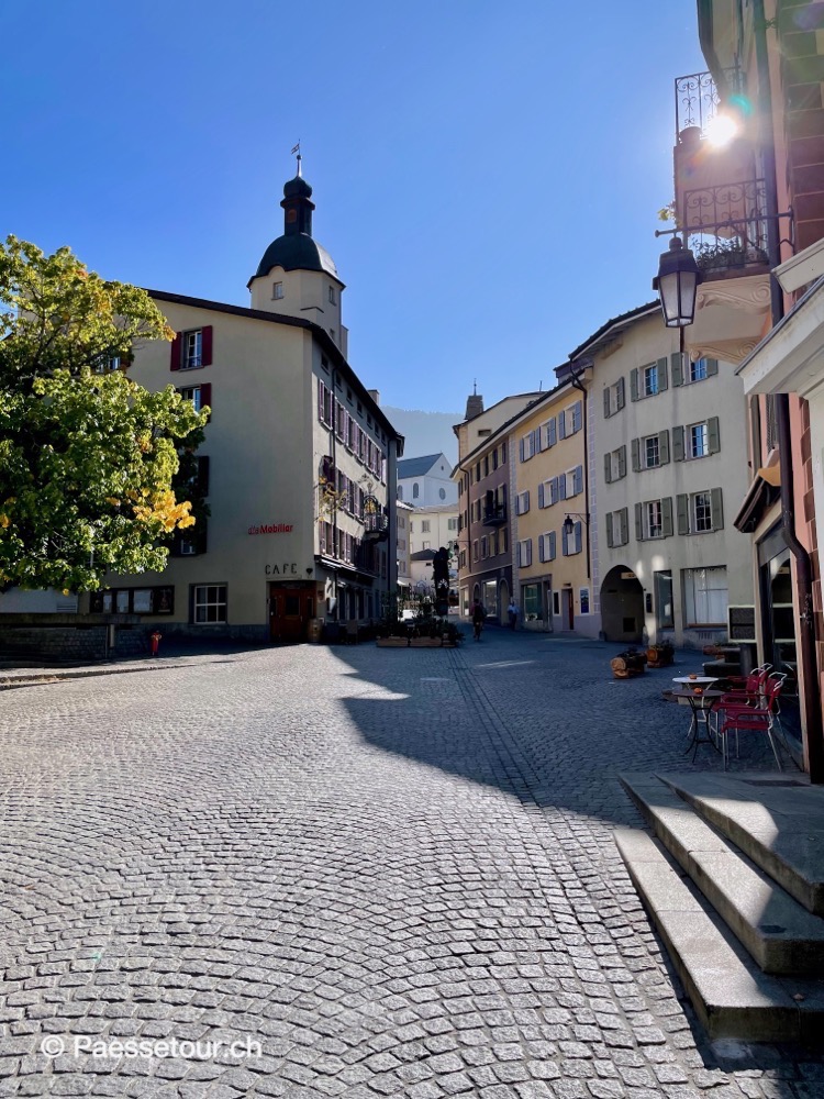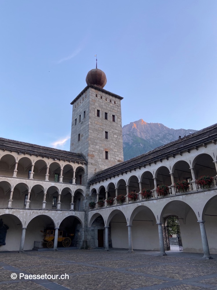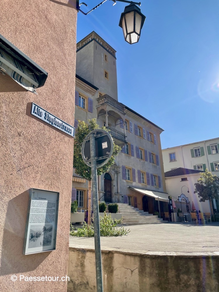 Wir kommen am Endpunkt dieser und am Startpunkt der nächsten Pässetour an: an der Kreuzung, an der die Alte Simplonstrasse und die Neue Simplonstrasse beginnen. Hier, zwischen den beiden Strassen liegt das Stockalperschloss mit seinem schönen Park. Es lohnt sich einen Spaziergang durch Brig zu unternehmen und vor allem durch die Alte Simplonstrasse zu schlendern. Links und rechts laden viele Restaurants zum Essen ein.