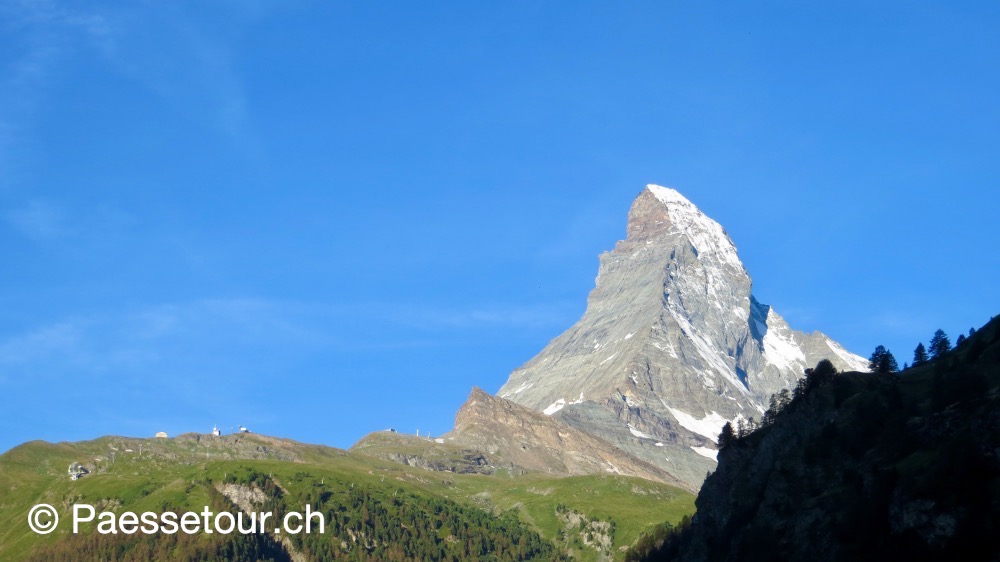 Bereits in Stalden hätten wir einen Ausflug machen können. Doch die Strasse nach Täsch ist nur wenig für uns interessant. Zumal wir in Täsch auf den Zug wechseln müssen, um nach Zermatt zu gelangen. Trotzdem ist Zermatt natürlich einen Ausflug wert. Wir sehen das Matterhorn, fahren auf das Kleine Matterhorn und den Gornergrat.